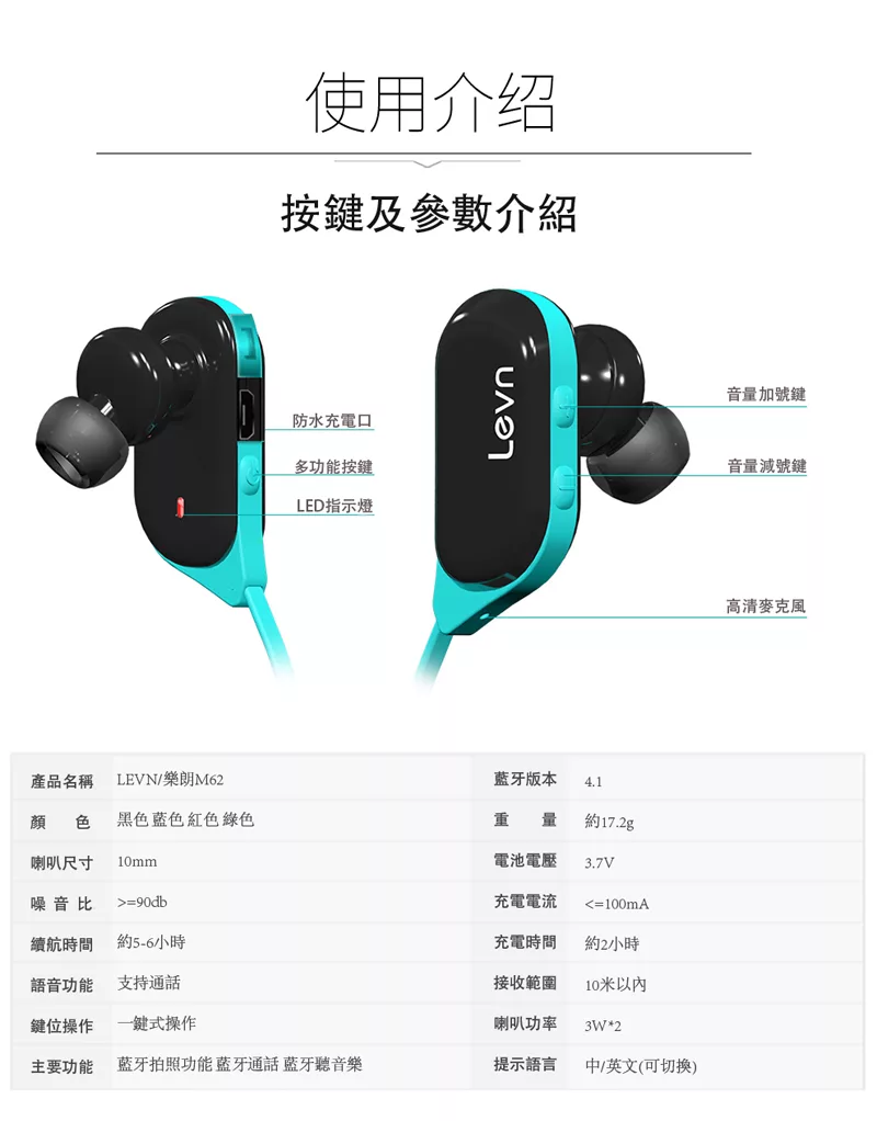 levn M62 藍芽4.1立體聲運動型耳機-綠 評價